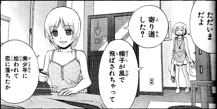 風に帽子を飛ばされて、家に帰るのが少し遅くなったようで、
